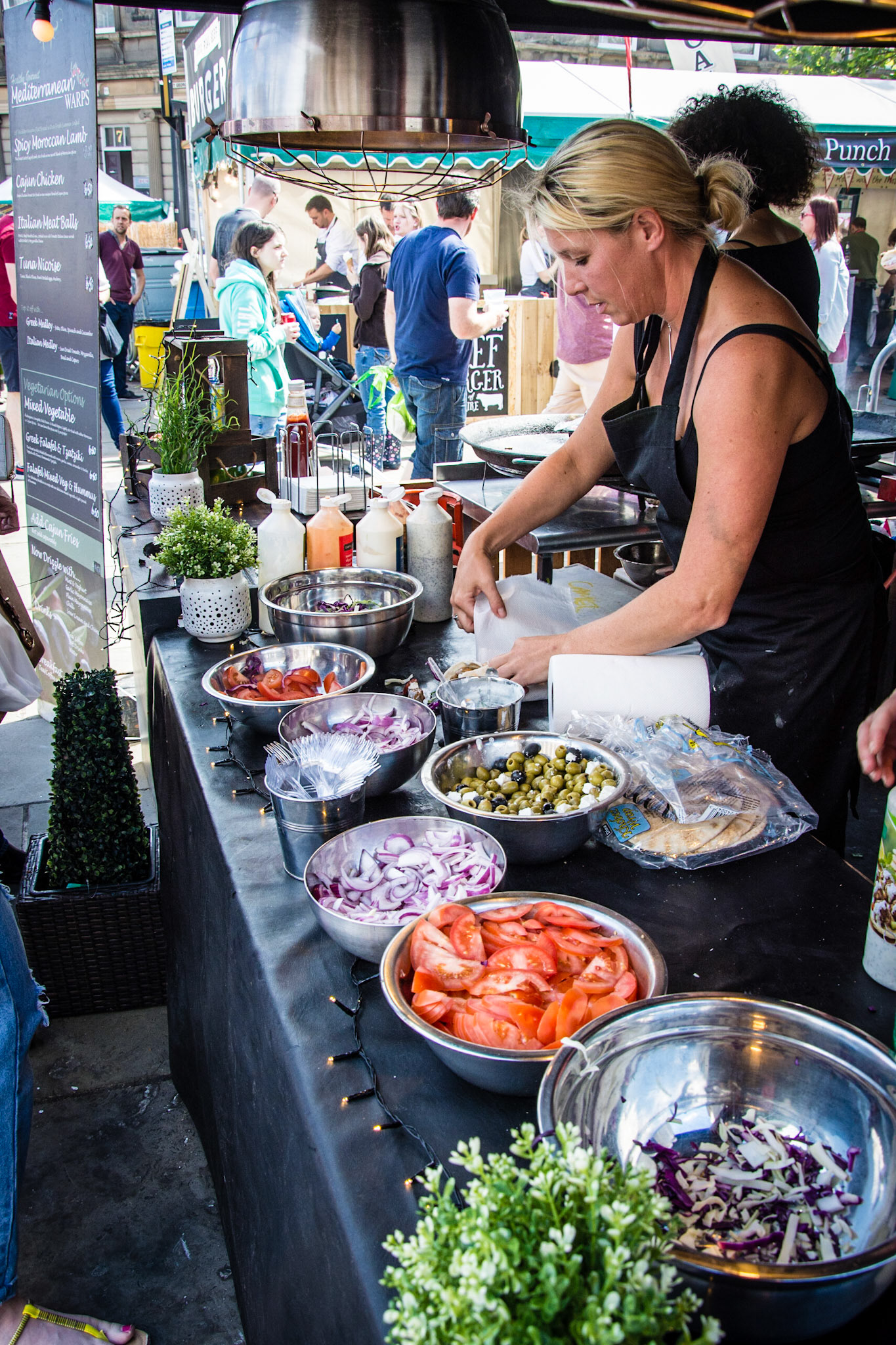 This Annual Event is held in the Centre of Huddersfield and showcases some of the best Food and Drink sellers available. Photos captured to show the variety of the stands and the public visiting them.